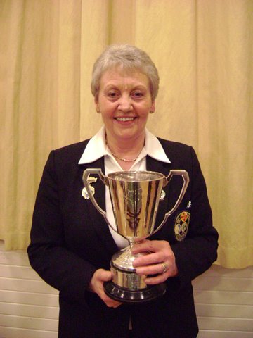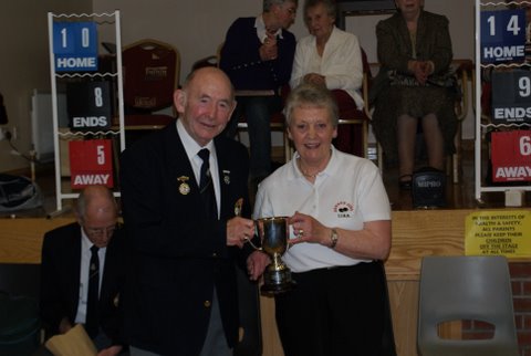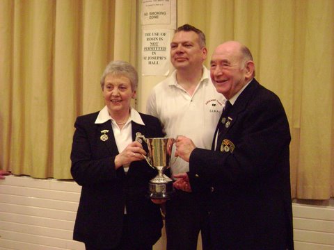 IIBA President Ronnie McDermott presents the trophy to Armagh Zone Convenor Flo McNally
